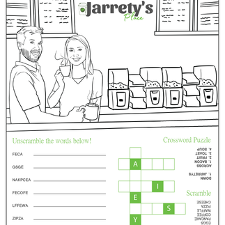 Kids menu drawing was a design from the Rochester Coloring Book. The puzzles were made exclusively for Jarrety's items.